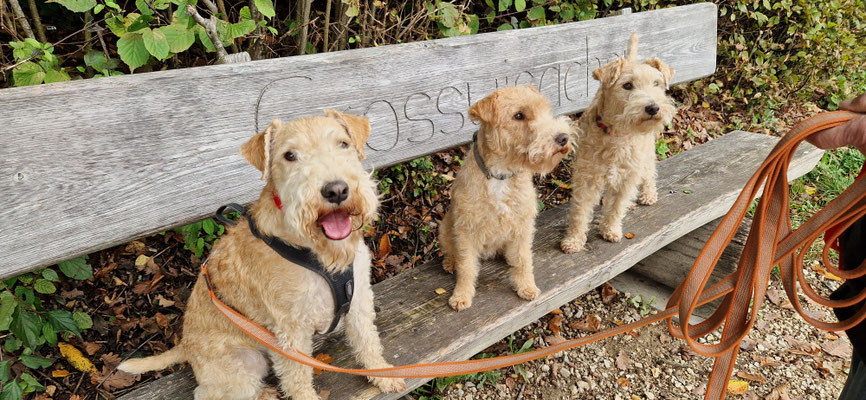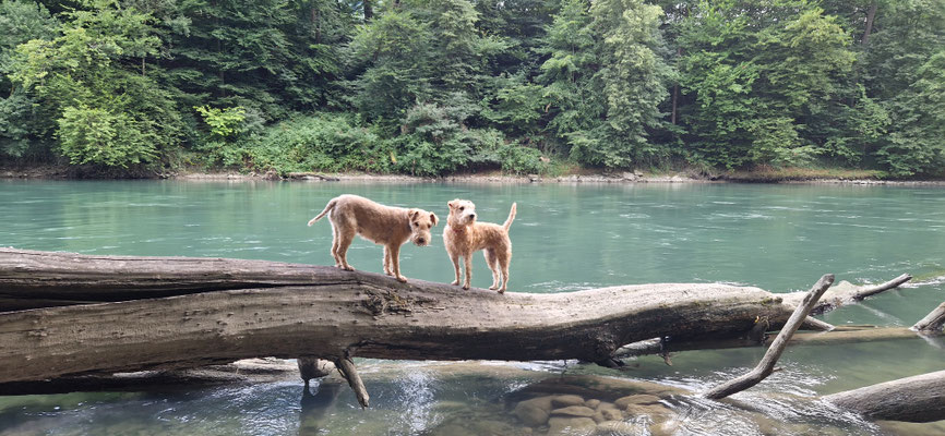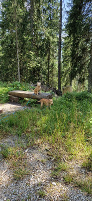 das haben wir auch gemeinsam gefeiert... jedoch konnten nur die 3rei "red grizzle" Joorin, Jlla und Jukki dabei sein... den fünf Laky's hat der Ausflug in Erlinsbach Spass gemacht... neugierig konnten sie viel erkunden... immer wieder mal sein Geschwister anstupsen... oder zusammen Baumstämme erklettern... es war wieder ein ruhiges Laufen an der Leine... und wir Menschen hatten viel zum plaudern...