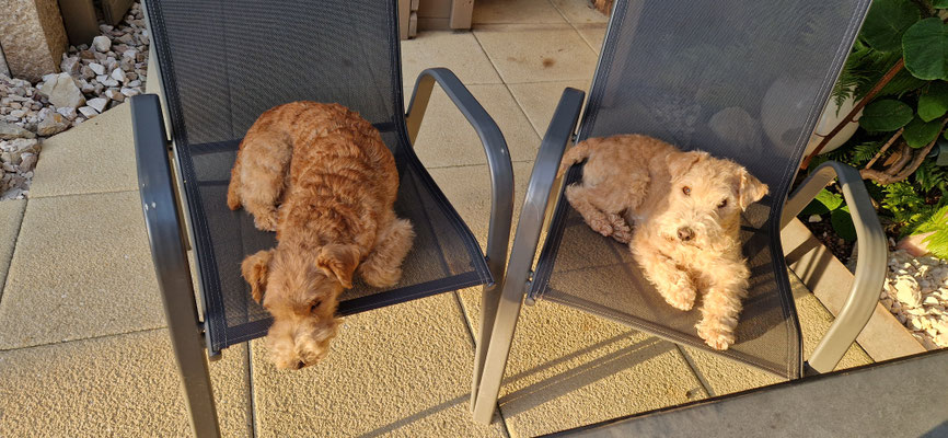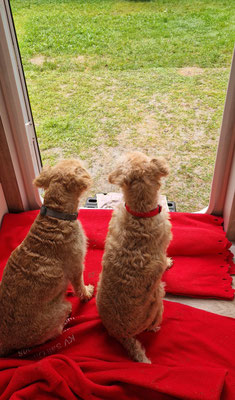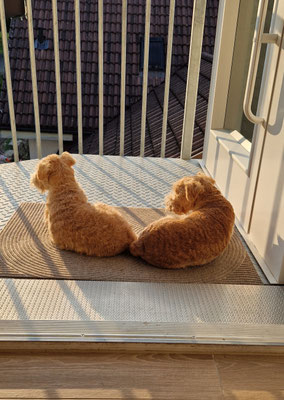 wenn ich Bonnia und Geelia mitteile, das wir alle zusammen weggehen... legen sie sich schon mal vor die Haustüre... gemütlich an die Sonne... und warten schön...
