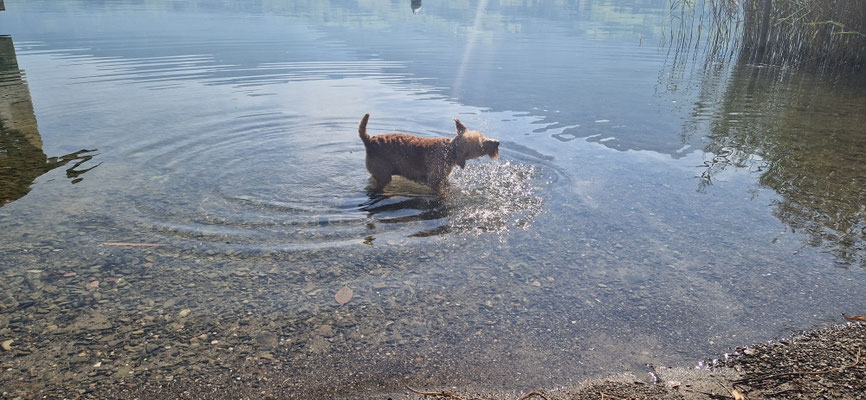 Beim Spaziergang am OriglioSee haben wir gleich noch ein freudiges Ereigniss... Dennie, der 9-jährige Sohn von Bonnia begleitet uns, zusammen mit Zwergschnauzer Neila und Lukky...