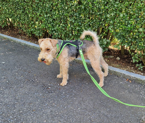 Dunkel und Regen tönt noch einmal anderst... Geelia hat damit gerade etwas Mühe... wenn wir dann auch noch an der Hauptstrasse laufen gehen... also üben wir das doch bei Tageslicht noch einmal...