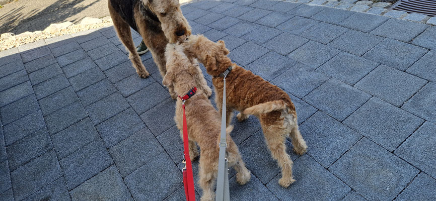 Und dann treffen wir auch noch Lukky... wieder eine stürmische Begrüssung... jetzt fallen wir natürlich auf... denn wenn sind schon 4 Lakys als Familie unterwegs...