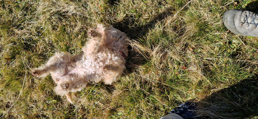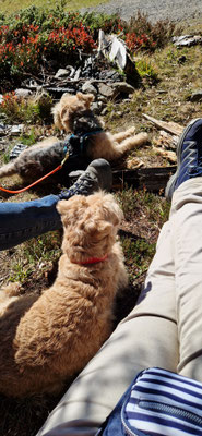 Obwohl kleine Hunde sind 10-20km Wanderungen kein Problem... wenn man zwischendurch eben auch mal Pausen macht... tut uns Menschen ja auch gut... die Ruhe und Aussicht geniessen...