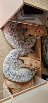 Bei den schönen Wanderungen mit herumtoben und ausgiebigem schnüffen... spielen und Nasenarbeit... waren Bonnia und Geelia am Abend genug müde, so dass Beide trotz ungewohnter Umgebung gut schlafen konnten...